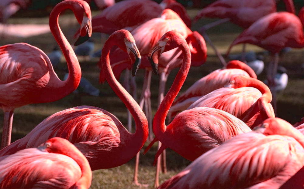 The flamingo is very shy, and is seldom hunted except for its beautiful feathers. The male, when in full plumage, is of a rose-red color, with deep purple wings. The female is of a less brilliant color. The young are at first nearly white, and do not appear in their full red plumage until the second year. The European flamingo is usually known as the Red Flamingo; those found along both the east and west coasts of America are more of an orange hue.