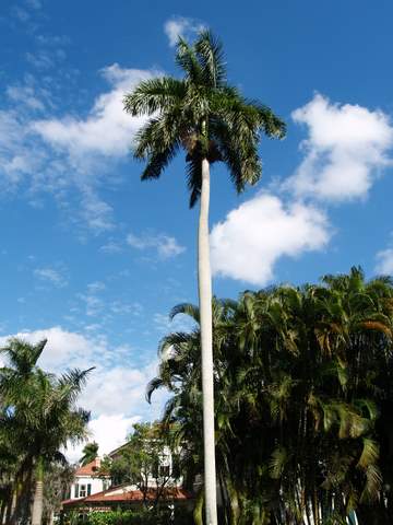 The Palmyra palm grows to a height of from sixty to ninety feet, and its tall stem is usually perfectly straight, but its bark is rough from the scars of former leaves. It is destitute of branches, like other palms, but is surmounted by an erect plume of fan-shaped leaves.